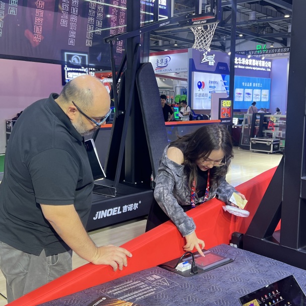 国内首个交互智能可视篮球板、自发电磁阻划船训练器、自发电磁阻推举训练器、JNE-X9智能比赛篮球架、JNE-X6弹簧升降篮球架……这些具有前瞻性的创新产品为体育器材领域的智能化升级注入了强劲动力,持续推动着体育产业向更高效、更智能、更个性化的方向蓬勃发展。