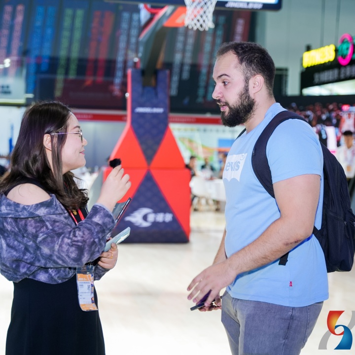 国际篮联器材与场地中心主任 Bart Prinssen莅临吉诺尔展位参观指导