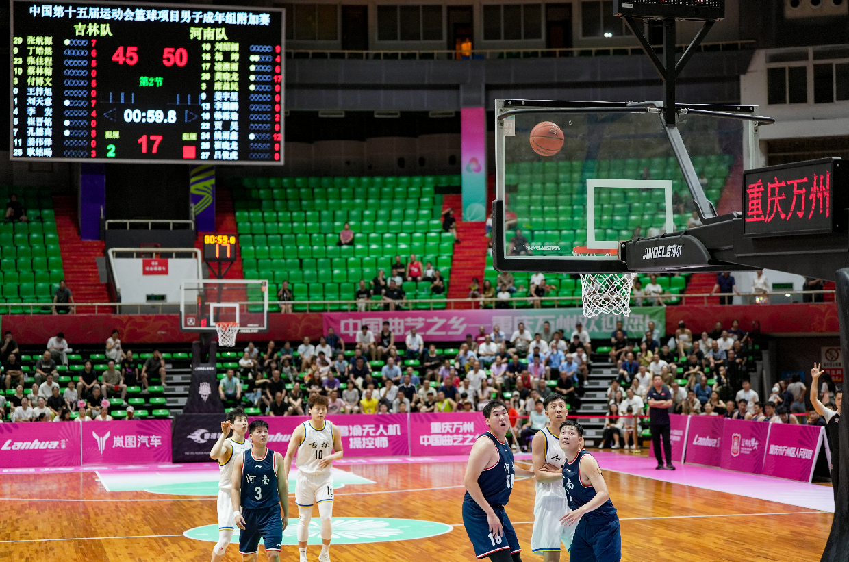 6月15日-17日,第十五届全运会男子篮球成年组附加赛的比赛在重庆万州三峡之星体育馆圆满举行。河南队、吉林队和湖北队突出重围,顺利晋级决赛阶段,而新疆队和河北队遗憾止步附加赛阶段。